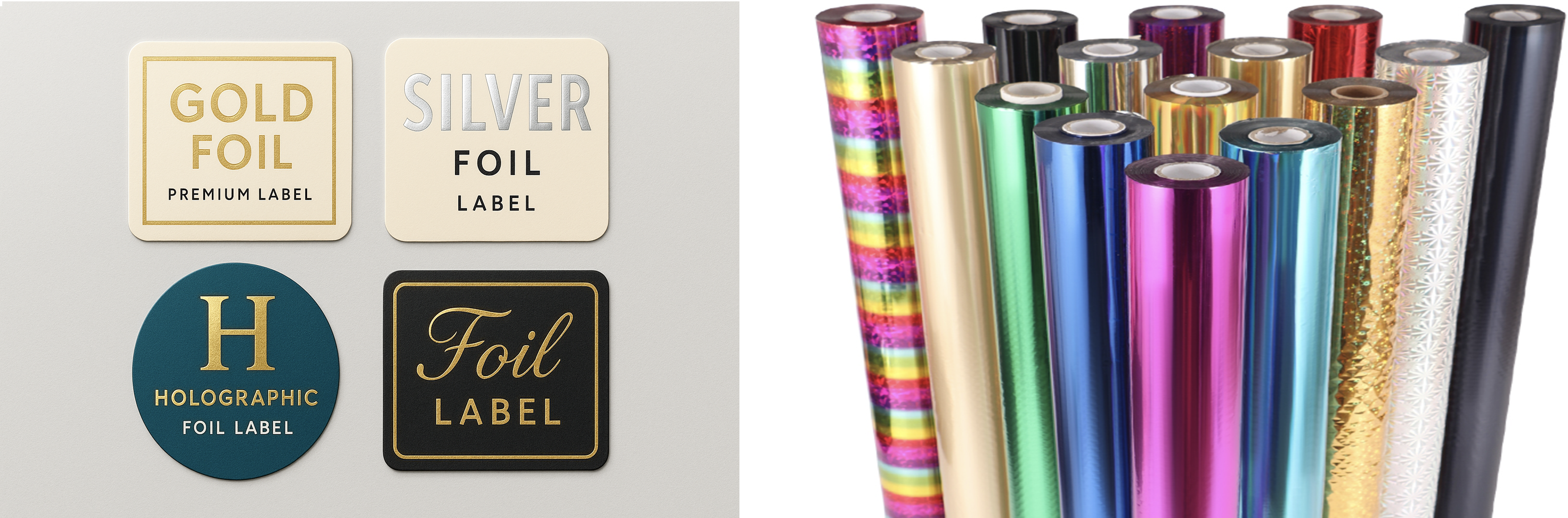 Premium product labels (cosmetics, beverages, luxury goods). Adding metallic logos, borders, or patterns for visual impact.